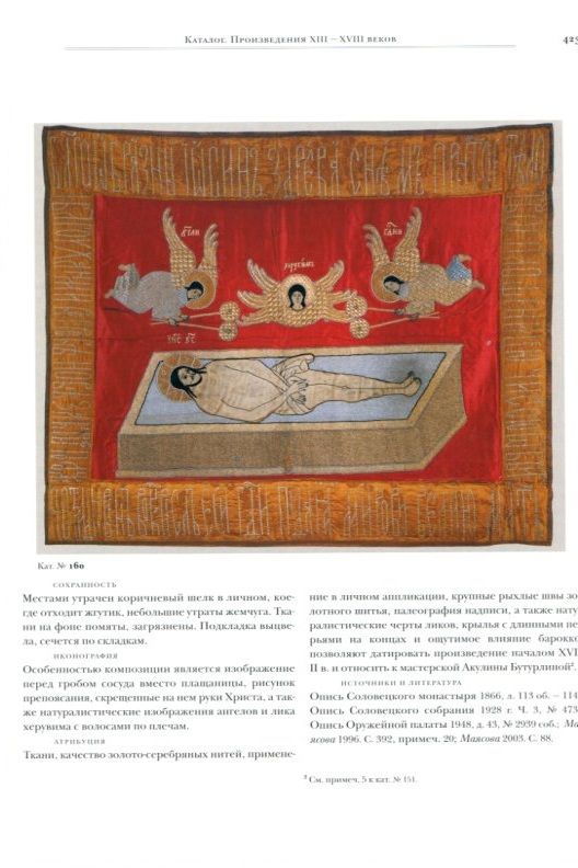 Каталог представляет собой первую научную публикацию собрания древнерусского лицевого шитья Музеев Московского Кремля, одного из интереснейших видов средневекового искусства, главную роль в котором играли женщины. В каталог вошло сто восемьдесят произведений XIII – начала XVIII в. За исключением царских барм и воинских знамен, они предназначались для богослужения. Это плащаницы, воздухи, покровцы, хоругви, покровы на гробницы, пелены, облачения духовенства, представляющие огромную художественную и историческую ценность. В каталоге дается исчерпывающее описание произведений. Благодаря вкладным надписям и архивным документам, автору удалось точно атрибуировать ряд предметов, определить многих художников-знаменщиков, выделить более двадцати мастерских лицевого шитья. Каталогу сопутствует большая вступительная статья, раскрывающая историю развития этого искусства в России. Издание представляет интерес не только для искусствоведов, историков, музейных сотрудников и реставраторов, но и для современных мастериц шитья и всех читателей, любящих отечественную культуру.