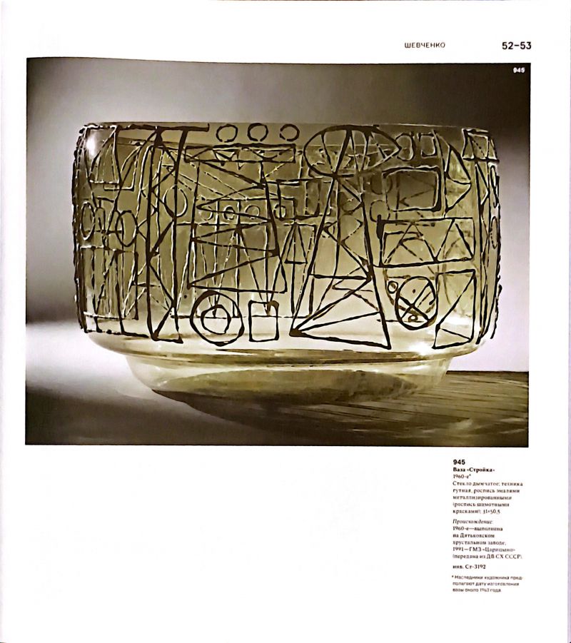 Издание является продолжением многотомного собрания генерального каталога ГМЗ "Царицыно", посвященного музейным фондам произведений авторского декоративного и прикладного искусства России и стран ближнего зарубежья, относящихся ко второй половине ХХ - началу XXI века. Книга 3 (Ч-Я) включает в себя 236 каталожных описаний работ (около 713 единиц хранения) 18 авторов советской школы художественного стекла. Представлены произведения из бесцветного и цветного стекла и хрусталя, выполненные в различных техниках выдувания и обработки. Издание снабжено цветными иллюстрациями всех упоминаемых произведений, сводом авторских знаков, справочным аппаратом и указателем имен художников.