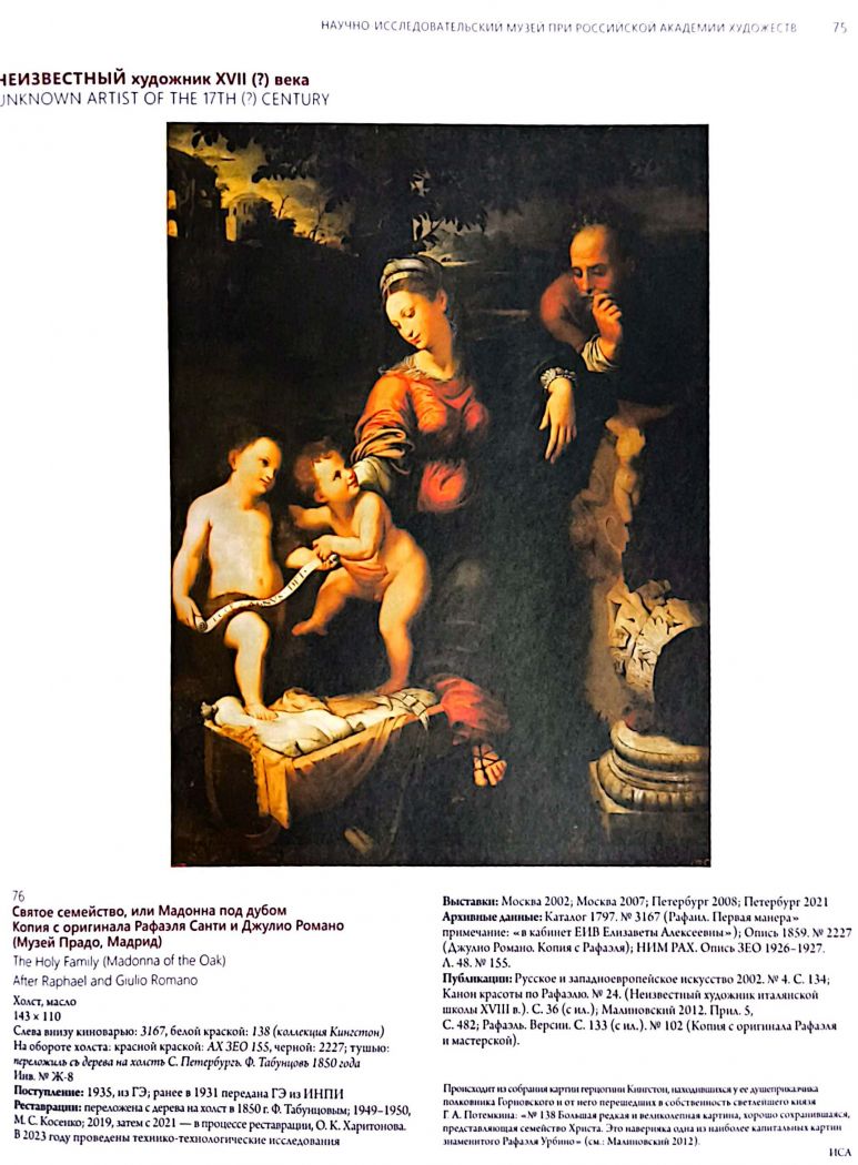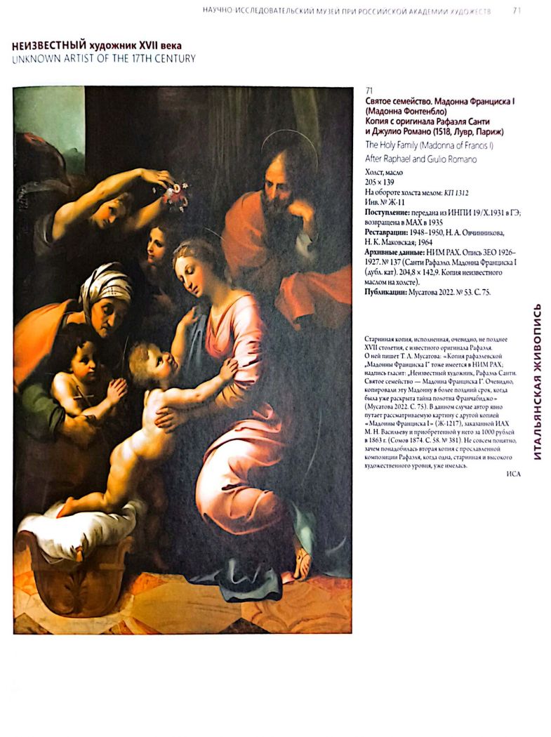 Каталог раскрывает историю формирования и состав коллекции западноевропейской живописи XV - начала XX века старейшего художественного собрания России – Музея Академии художеств. Основой его стала коллекция И.И. Шувалова, позднее появились произведения из других частных собраний, императорские дары и подношения почетных членов Императорской Академии художеств. Особая ценность издания состоит в том, что сведения в нем приведены в соответствие с современным уровнем знаний по истории искусств. Произошли изменения многих атрибуций, уточнены и конкретизированы названия целого ряда живописных произведений, что потребовало большой исследовательской работы.